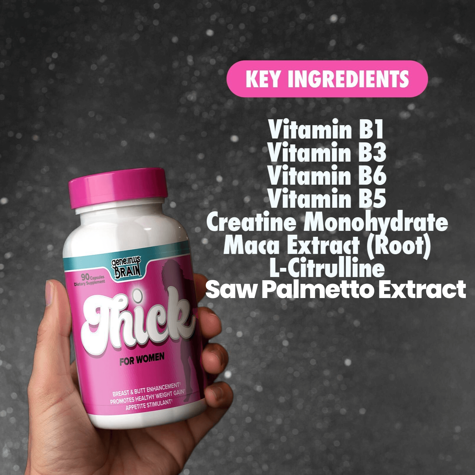 • Thick Capsules contain a blend of herbal extracts, vitamins, and amino acids that help support appetite, hormonal balance, and natural curve enhancement.